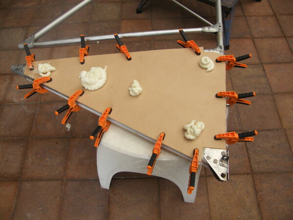 Now comes the fun part. Just how much foam does one squirt inside. Oh well, trial and error time. After all said and done , nothing ventured, nothing gained. I thought it was going well after spraying in the evening, but next morning..........