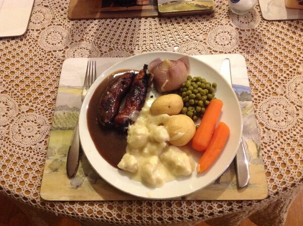 3. After nine days feasting on Chinese in Kunming China. First meal I russled up when I got home. Beer just out of the picture. PHIL