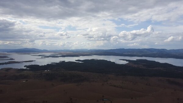 2. This is Lake Wivenhoe from the south getting close to the dam wall (it is off to the right a ways). Fires in the distance.