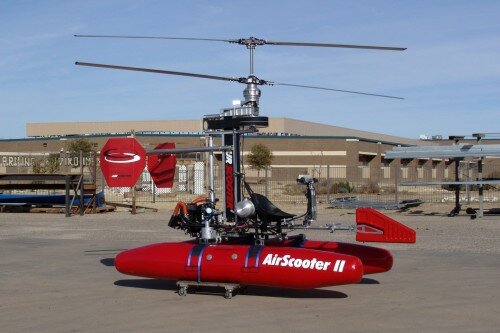 AirScooter II Ultralight Helicopter This 65 HP Ultralight Helicopter demonstrates that personal helicopters in the back yard parked beside the family car may not be a far fetched concept. If you can’t wait to get your hands on the real one, you can always buy the model version for now. “Going back to the future of rotor craft design is the basic concept of the AirScooter VTOL (Vertical Take Off and Landing) vehicle by AirScooter Corporation of Henderson, Nevada. “The original Sikorsky rotorcraft helicopter concept was based on a coaxial design much like the AirScooter,†says Woody Norris; internationally recognized inventor and AirScooter Corporation co-founder, “what we’ve done is package the coaxial design in a modern light-weight craft that allows for intuitive control and incredible maneuverability.†By eliminating the need and complexity of swashplates, collective and cyclic control through a coaxial rotor design a number of benefits beyond conventional helicopter designs are immediately realized. First; enhanced, intuitive flight controls are achieved by simple motorcycle-style handlebars and the absence of a tail rotor. To gain altitude, simply throttle up like you would on a motorcycle, turn left or right on the handlebars for craft rotation and move the handlebar assembly as a joystick for directional control (including reverse). No pedal controls are necessary, which means someone without the use of their legs can just as easily fly the AirScooter. Handlebar controls represent the most distinguishable feature of the AirScooter. AirScooter’s patented design also provides an amazing level of stability whilein the air and during flight.â€Â