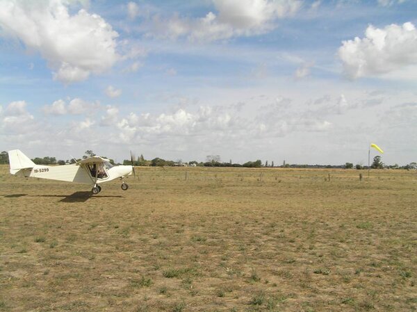 For those interested in the position of windsock in photo I must inform that the day was calm.At the time of take off a whirly of such came through which gives a false sock reading.I hope this clarify's the pic. Today is also a great day as I finished my student & gained my restricted licence, then to top it off I flew my Savvy for the first time."What a terrific buzz!" Cheers all.
