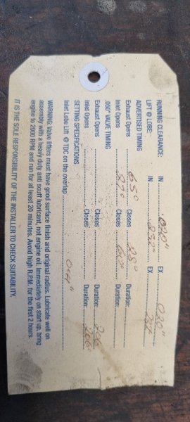 3. Photo of the cam and spec card