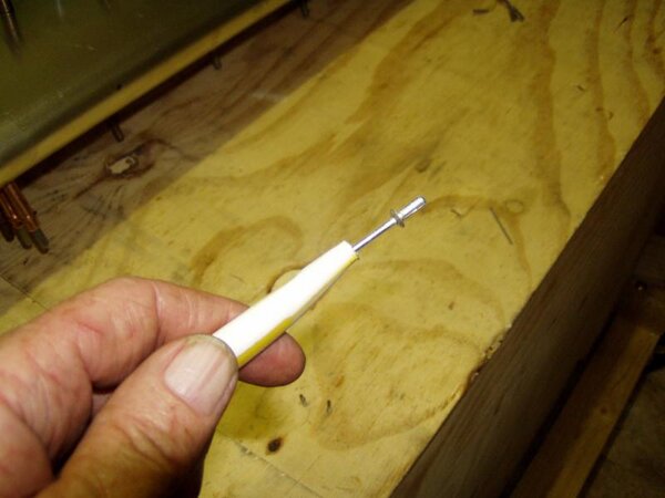 Hi All, Another idea that I thought I might share. With something like 10 000 rivets to put into a Savannah, there are more than a few that are a little difficult to line up. This little tool has saved me sore fingers and eliminated the risk of piercing my hand with the sharp end of the rivet.[ATTACH]7375.vB[/ATTACH] Just cut the head off a soft-handled toothbrush and drill a hole in the end to take the full length of the rivet shaft. It is soft on the hands and releases the rivet easily.