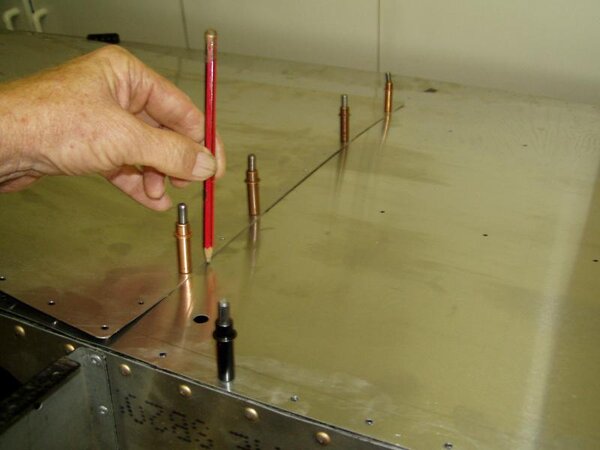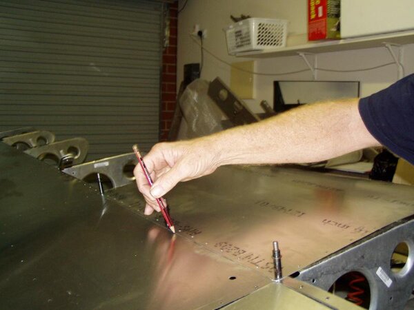 24. Hi all, I thought I would share an idea I used in my VG XL build. The thought of cutting half a square metre from the bottom skin of each wing scared the heck out of me. Where to cut? Is it too close or too far from the rivets etc etc. Then I remembered how well these aeroplanes are engineered. All the rivet holes are the same distance apart and the same distance in from the edge. So, to measure the distance in from the edge to the cut line, all I had to do was cleco the inspection hatch on from the outside in and scribe a line along the edge. This is the line along the main spar, with me marking the line for the cut. The altenative is to leave it in place as is and use it as a guide to cut along. [ATTACH]7373.vB[/ATTACH] This is the line being scribed along the rib.[ATTACH]7374.vB[/ATTACH] The bottom cut is just an extension of the original cut line.