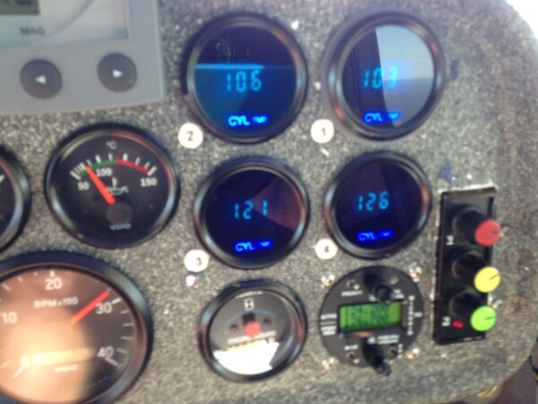 I bought this jab because of the builders detail to duct work etc. photo taken at 32 deg day @ 1000 feet last year. Oil cooler attached to lower cowl, large opening lower cowl and hand made air ducts that Inclose spark plugs and has scat hose at rear of ducts used to balance air between the 2. On hard climb no 3 can reach 156 on a stinking hot day but lowering nose will quickly lower temps. Oil is a bit cool, but I don’t want to play around with it and up set something else