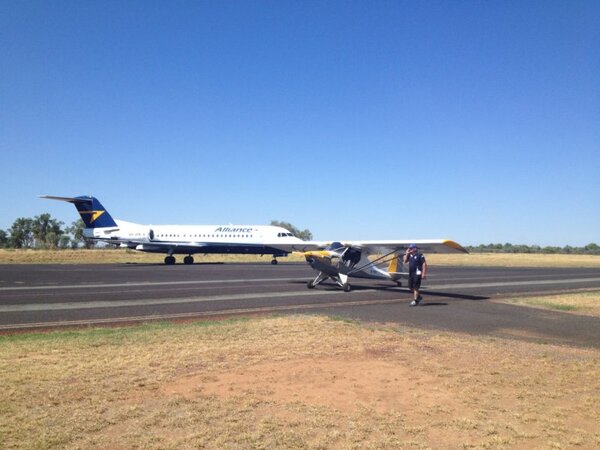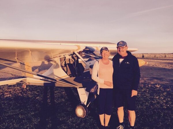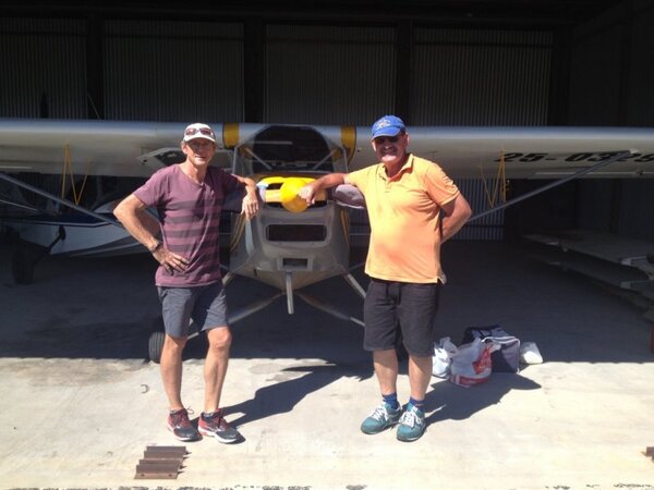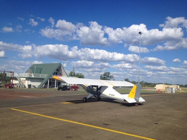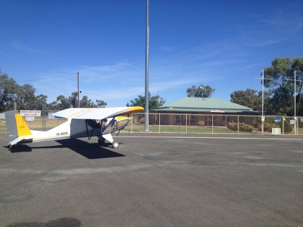 12. On the 2nd of February 2016 I was relaxing at home when my mobile phone rang. The caller was Tony Cathcart who is the owner of an Australian Lightwing aircraft that has been based at Wentworth Airport for several years. Tony moved to Queensland 3 years ago for work and was missing his plane. After a short conversation Tony asked if I would be interested in flying the plane to Maryborough, Qld for him. I thought long and hard for about 3 seconds and said yes I would deliver the plane. I had not flown the Lightwing for a while so I called on Cliff BANKS CFI for a few refresher lessons. A flight plan was formulated and a GPS and Beacon was provided by Mick WATSON. A new ERSA and the relevant WAC charts purchased and several hours of circuits and local flights and I was satisfied that I was ready to go. Day one Friday the 1st of April 2016 my wife Tracey and I met Mick Watson at the airport and I rolled the Lightwing out of the hangar, we could not have asked for a better day. There was a very gentle breeze from the North West and very little cloud cover. After a pre-flight check we posed for Mick to take a photo, after all, this was only the second time Tracey and I have flown together. After strapping ourselves in I pushed the button on the dash and the 912 fired up. After warm up we taxied for runway 35 and headed off to Wilcannia via Menindee. We climbed to 3500 feet and the flight was not fast and with the slight head wind we were ripping along at 65 knots ground speed and it wasn’t long (tongue in cheek) before we passed the Ginko sand mine. About one and a half hours after leaving Wentworth we could see the Menindee Lakes and to say there is a water shortage here would be a gross understatement. I had not imagined the country out here could be so dry and dusty. We adjusted our course a few degrees to the right and headed for Wilcannia. Our track was mainly along the Darling River and in places there was just a dry river bed. The air started to get a bit bumpy and the little plane with its massive wing wanted to keep climbing on the thermals. A bit of forward stick kept the altitude in check and as we surfed off the thermals we managed to get the ground speed up to an impressive 80 knots and we were soon at Wilcannia. After landing a phone call was made to Pat BARACLOUGH and a short time later she arrived at the airport with the prearranged fuel and some cold drinks. After stretching the legs and topping up the wing tanks with premium unleaded Tracey I and strapped in and were soon airborne again and heading for Bourke. The terminal at Bourke is very modern, is a credit to the town and is named after the legendary aviator Nancy BIRD. A call to Paul at Frank’s Service Station and our prearranged fuel arrived. The wing tanks were filled up and we saddled up again. As we lined up on the main runway we had a problem with the tail wheel so we made our way off the run way and called on the assistance of a local engineer. By the time the problem was fixed the time had slipped by and we elected to stay in Bourke overnight. Day two we woke to another stunning day and a 5 knot breeze off the south west. After the pre-flight check and we taxied for the cross strip and took off directly into the breeze. Once we gained sufficient height we turned northeast with a tail wind for St George that was estimated to be three hours away with not much in between. We made good time with the tail wind and managed about 75 knots ground speed at 3500 ft. After three hours the St George airport was a welcome sight and a chance to stretch the legs again. A call after landing and Tarny from Lowes Petroleum arrived with our fuel. We had to share the apron with a slightly bigger and faster aircraft. After topping up the wing tanks we went back to the fuel depot then Tarny drove me in to town to a fantastic corner shop where I found a couple of fresh hot pies and some dim sims to go with an ice cold coke zero. Back at the airport Tracey and I devoured the food and it was as good as it looked and really hit the spot after a light breakfast. I checked over the plane again and we strapped ourselves in and set off for Chinchilla about 2 hours away. The thermals had stated to build up and a few small cumulous clouds began to appear. I reduced our cruise altitude to put a bit more distance between us and the clouds. We still had a tail wind and made good time as we raced toward Chinchilla at about 75 knots ground speed. About half way between St George and Chinchilla we crossed a line and this is where the country went from dry and dusty to green and grassy, there were visible puddles in the paddocks. Arriving at Chinchilla I landed on the grass cross strip and taxied up to the apron in front of the Terminal/Aero Club Rooms. Another amazing little airport with great facilities. We tied the Lightwing down and called a taxi to take us to our Motel. After five hours flying in bumpy conditions we ready for a rest. Day three, the weather continued to be in our favour with clear skies and a tail wind. The GPS was set and we took off for the last leg to Maryborough approximately 2 hours away. We tracked for Wondai and around the biggest off the hills and then headed for the last stop on this journey. As the miles counted down the GPS said we were over Maryborough but this was at odds with our visuals. We reset the GPS and still had issues. My quick thinking navigator grabbed her IPhone and advised me that we were close to Childers and she quickly referenced the maps and advised that we had to track south east for Maryborough about 20 miles away. A short time later we were over Maryborough and on final into a fairly stiff breeze directly down the grass cross strip. To say Tony was happy to have his plane home and in the hangar was an understatement and after approximately 12 hours flying time I was happy call the trip over. Special thanks to my wife, navigator and best friend Tracey for accompanying me.
