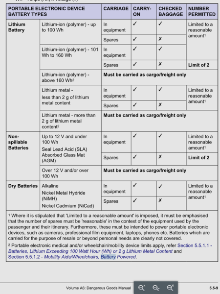 That's right.........Isn't RJW asking about using them in flight? Cartage of the battery is different. There may be some differences for private flying but I can't find any reference for it. It's all ICAO D.G.'s far as I know, but I'm happy to be enlightened if someone finds a reference in the regs or elsewhere. -