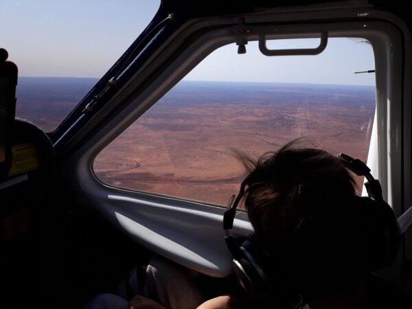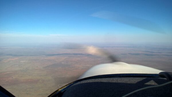 11. Flight this morning from Stephens Creek to White Cliffs for a milkshake and a bucket of hot chips. By 11.00am it was rough as guts up to 7500ft, spew bag on the ready for my young bloke but to his credit he held on. Not a rain cloud in sight. Easy 10 minute stroll into town from the strip and well worth putting on the destination list for a couple of days. Above; 3500ft heading out before the thermals started getting too exited. Welcome to White Cliffs !!! ASIC not required!