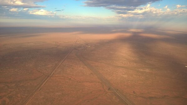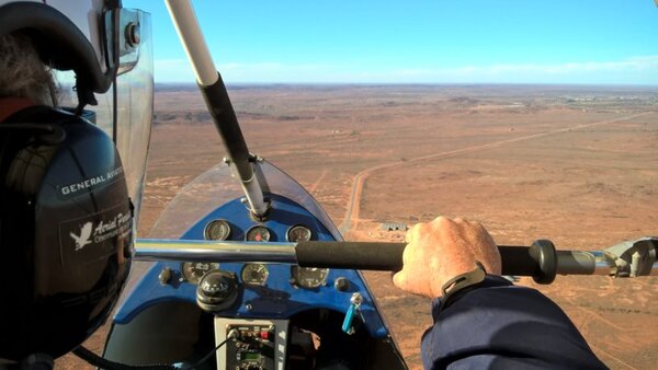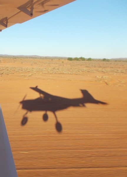 18. Have had 3 days of fun flying, flights with my kids and then a fantastic trip as a passenger in a Trike this morning after bacon and eggs for breakfast. Following theTibooburra road heading towards Broken Hill which can just be seen on the horizon in the left of the pic.