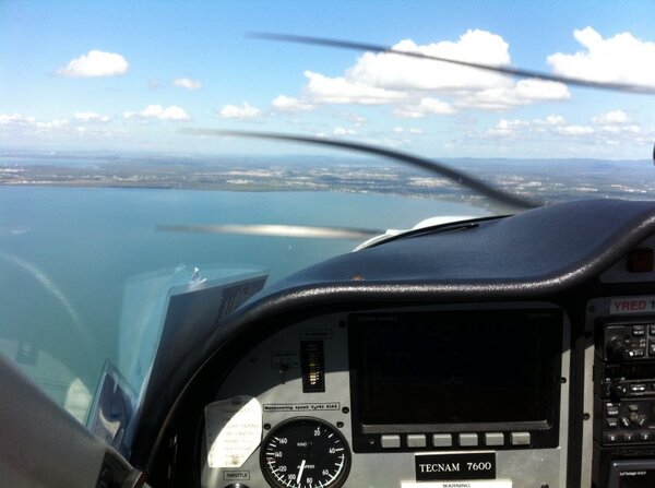 Back at YRED this morning, today's lesson, "Circuits". My instructor was Peter Lefrancke, aircraft was the Tecnam P92 Eaglet from "Fly Now Redcliffe". Another beautiful day for flying, a small crosswind, about 5 - 7 knots. After a briefing from Peter on the ins and outs of completing a circuit, we fired up the tecnam and it was on for young and old. under Peter's guidance I completed 6 landings and 2 go-arounds,