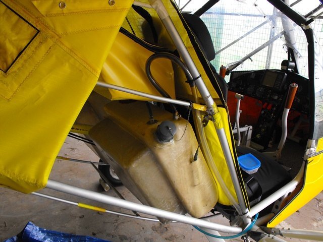 added a "camel hump" on the back of the existing fuel tanks...fibreglass with connecting holes to existing tank. Went from 50lts to 94 lts...because COG is over the wheel centres the change to cog was minimal, still within spec. Made the Aircraft a longer distance machine... eg..brakon hill from Goulburn...fuel at Griffith and Ivanhoe... The pic shows the pass side, the pilots side had a similar extension. Very important to use the right ester as one ius fuel safe and the other breaks down. Cant remember which one I used but it lasted a number of years before I sold it and no sign of breakdown or trouble. -