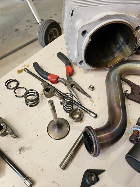 I have a friend with a lsa55 jabiru with a gen4 engine about 4 years old and 50 hours total time. Over the last year or so another L2 friend has attempted to resolve a slight roughness in the engine, it seems to occur at cruise rpm. Carburetor, jets, fuel flow, spark plugs, ignition system changed etc have made no difference, all very frustrating. A few weeks ago the owner and I went for another test fly. As we rotated the engine lost power and became very rough. Taxi back in engine running rough the whole time. I got out and flipped the prop over, no compression on one cylinder. Suspected a stuck valve. Five minutes later flipped prop over and very good compression on all cylinders. Later we did a cylinder leak down and all were 76-77. Next we ran the engine up keeping an eye on cylinder head temps, it is very cold atm. After about 2 mins the engine started to run rough. Flip prop no compression on one cylinder. Got leak down test done as quickly as possible, every cylinder 76-77. Repeat two more times, same result, no compression then comes good very quickly. So we Suspected a hydraulic lifter problem. Order parts. Removed rocker cover from problem cylinder and found the big valve spring was broken. Pulled cylinder to check for other damage, none found. We will replace hydraulic lifters on that cylinder and all valve springs in the engine. The valve spring was broken in two places, suspect this happened at two difference times, one break small problem, two breaks big problem. So in a way it was a lifter problem, the little valve spring only is not as strong as the hydraulic lifter. This was on inlet valve. Engine was starting and ideling perfectly. The valve springs are very cheap but this has been a costly ordeal. I post for educational purposes. The valve spring can be seen in three pieces.