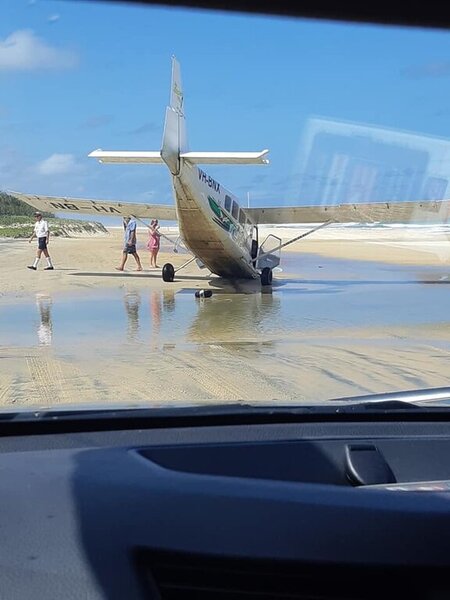 Airvan gets bogged on Fraser Is beach