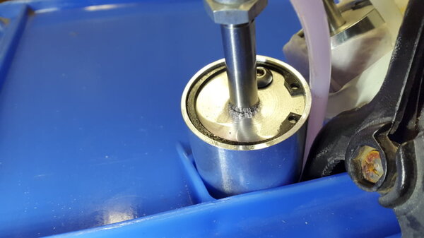 I ran into trouble with the ICP brakes. Problem is: when I push some times on the cylinder some oil is starting to come out in bubbles. The oil is coming, when the cylinder is released. I don't know if this is o.k. and will end when the brake fluid level is leveled. The cylinder has no resevoir, don't ist? ( Sorry, can't find the right words, hope the meaning clear)