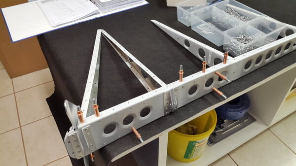 Yes, I double checked if I mixed directions, right, left, up, down or mixed up ribs.... No everything seem perfekt to me. The holes in the ribs and the longerons fit together perfect. The holes in the rear longeron and the ribs fit perfect to the skins. Problem is just the front line of holes. Not even the holes in the ribs fit to the holes in the skin. Actualy they do, except the foremost one. Thats the same on all ribs. There seems to be not to much I can do wrong, to the fitting of this one hole in every singe rib.