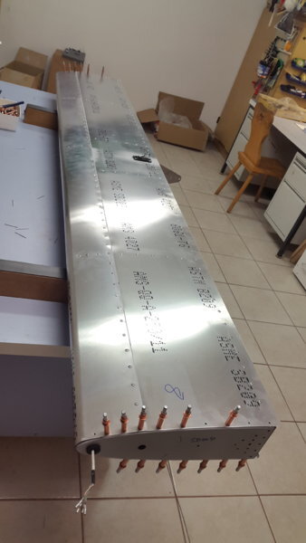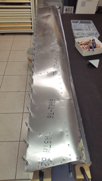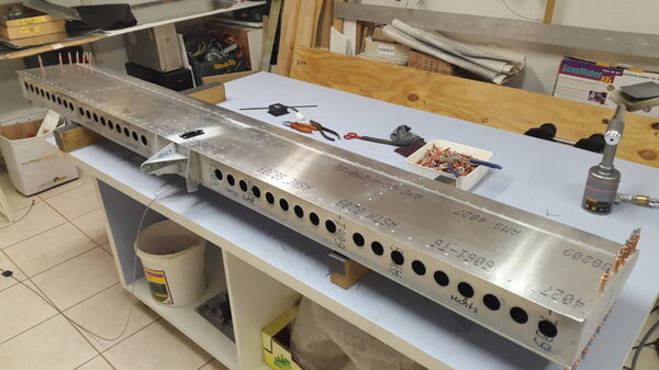 25. I'm in good hope..... It's two holes per rib ( upper + lower skin ) I glue a small peace of scrap alu unter the wrong holes to give the rivets a firm grip. I hope that is the right idea!? And drilling out rivets is unexpected easy. From what I have seen on videos, you have to get the steel out first. That needs some force and a hammer. But when I tried to do without,it worked well. The head came off easy and the rivet could be pull out from behind.