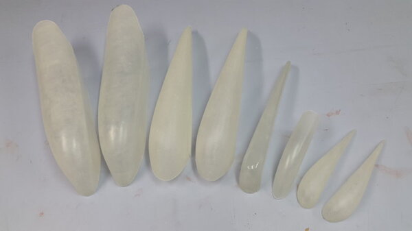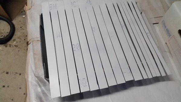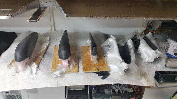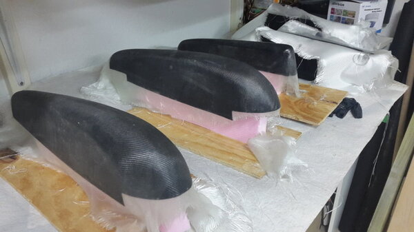 15. Made a real mess this weekend. All sticky and lots of glass fiber snowballs... But the result is o.k. .... the weight of the epoxi + glass parts is a little more than half of the originals. The thickness is 0,75 mm which will make good fit, when I use the alternative method of attaching the tips.