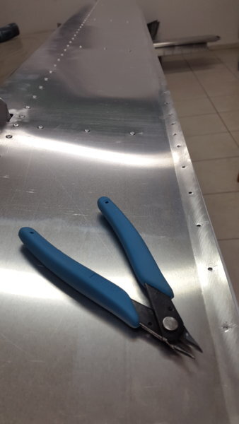 18. Finished the elevator yesterday. All went well. Also did the first solid rivets. As suggested I used a modified pliers. Friend of my mom did the mould on one plier-side with a radius moulding cutter. The pliers are easy to operate with one hand and have enough power for the tiny rivets. Only thing is that the shop head tends to wander a little out of the middle. I dont know how much is acceptable???