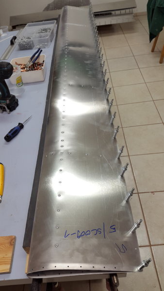 9. Thanks again for your Help. I'm sure the strongness of my riveting results would be o.k. like you all suggest. But I'm also affraid I might fail in the inspection. So I ordered the right rivets AN470 AD-3-3 an a propper die. I'm still not satisfied with the upper, aft skin on the flapperons. There is a dent in the place where the first rivetafter the longeron is in the rib. The outline of the rib just don't takes the thickness off the longeron into account, like the ribs of e.g. the rudder does. How did you deal with this? When I see Bobs flapperons, the look nice!!!