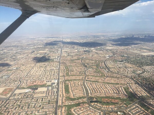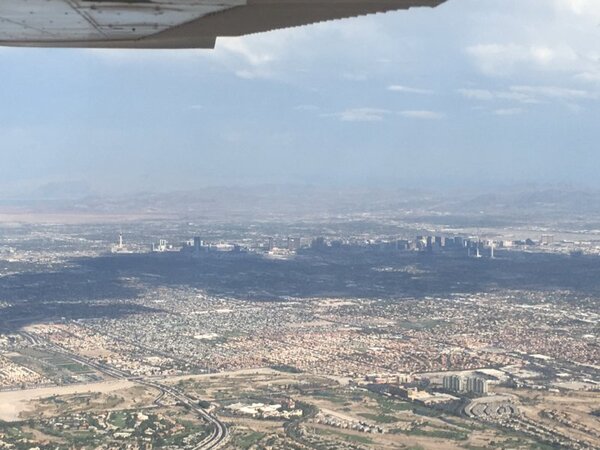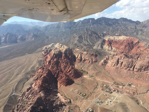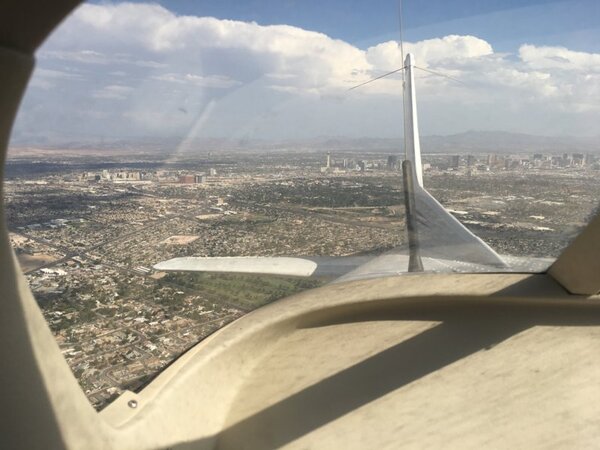 1. So whilst on a trip back home to NZ after visiting family back in the UK the wife and i stopped off in Las Vegas for a few days. With all the scenic tours available I thought why not try and book a bit of a training flight with a local school around the scenic areas. I was lucky enough to find one with space "Airworks - can't recommend them enough" at short notice and availability in a C172 and went for an area familiarization fly around with an instructor over towards the spring mountains and red rock areas to the north east of the city. Amazing experience in rather turbulent conditions with gusting 25kts cross winds to 6500ft, anyhow here's a couple of pictures and a video of the final approach "My wife trying to hold the camera straight with all the bouncing around" into North Las Vegas Airport, the instructor taking over at the end just before we cross the highway.