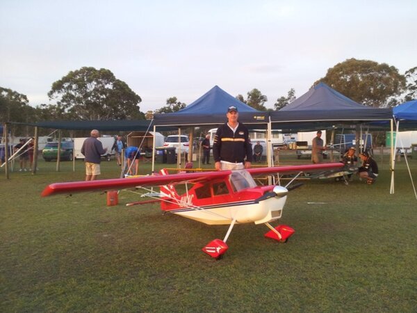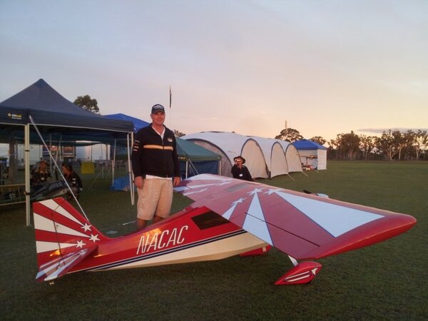 9. Further update......... I made the big flight of 22.3 nm from Gladstone in the Skylark this morning in beautiful air. Plenty of interesting aircraft here already including Trojan, Texan, Yak 52, L39 Albatross, Bird Dog and of course Matt Hall's Extra 300L. There is a gaggle of Lightwings, a pair of Petrels and a bunch of Savannahs. As far as GA goes there is the expected Cessnas, a Lake Buccaneer, a Bonanza & a Commanche. Great dinner tonight, followed by an interesting talk by Matt Hall. I got to meet Matt personally and got my 30% scale model of his race plane signed. Hopefully get some pics tomorrow with Matt, myself, his Extra & my model. The weather is looking good so it is shaping up to be a great weekend.