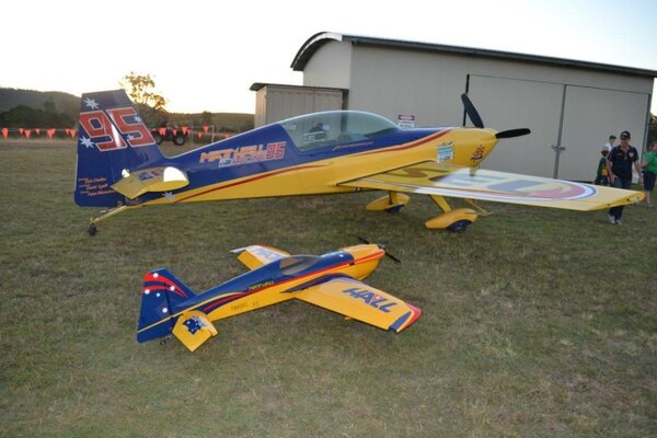 5. Mad if you don't Matt. You might even be in the running for furthest distance flown. Following are some pics taken late Saturday arvo, shame the light was not a bit better. Remember my model is of Matt's race plane, the Extra pictured is the ride / display plane.