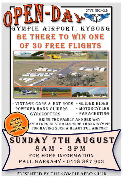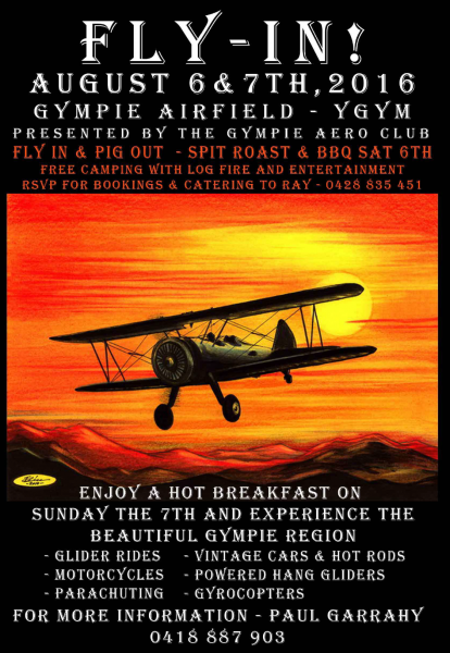 3. 'ERE IS THE SUNDAY 7.8.16 FLYER IF YOU WALK, PUSHBIKE OR MOTORCAR TO KYBONG AIRPORT (GYMPIE QLD)