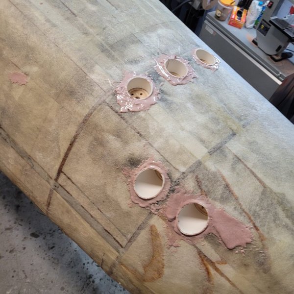 I got all the intakes done inside and out, plus about a metre of the top nacelle and the port nacelle. Now I'm out of resin, saving up for the next batch to finish it. There's still a top coat to go, some body-filler, and sanding with the big orbital, before a final paint. In the meantime, I thought I'd try to make the RCS ports look a little more technical with some detail in the holes.