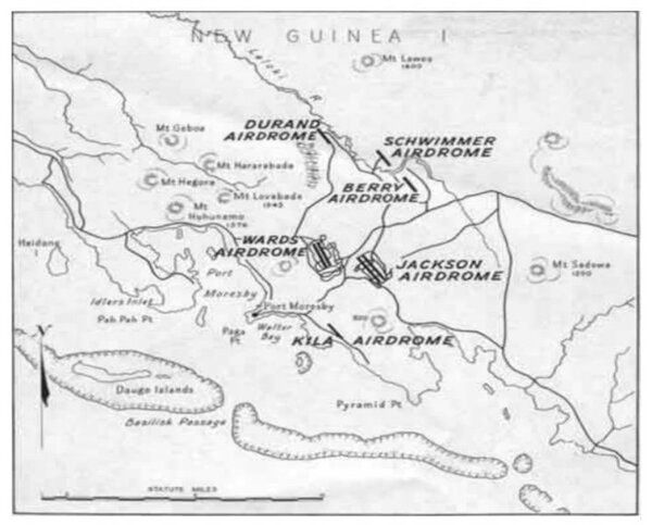 I trawled through my early logbooks today and found that I had made 196 separate trips from Port Moresby into the 4 major Kokoda Track airstrips. Noted about 40 Gap passages to the N side as well. In all of those trips, there were only 3 aborts due wx. Didn't add up the hours but it was usually about 40 mins per trip, unless you went from one strip to the other, (Efogi to Kagi was 4 mins!). All of them except 8 were done in 260 HP Cessna 185 aircraft - the 3200 lbs MTOW models. No nosewheel Cessnas ever serviced the track strips to my knowledge. The Pilatus Porters were beginning to takeover the Track work by 1970. These C185s were all fitted with cargo pods and we used them every load to keep the weight forward. Surprise, surprise - we did weigh a lot of the freight and used a standard weight for national passengers. Each departure required a completed load sheet, pax manifest, and cargo manifest - making the paperwork quite onerous. It was really difficult to keep track of who was where, and what had been loaded into the aircraft while you were distracted with other tasks. Efogi was so steep that we usually used only 20 deg flap and 65 KIAS on approach because the roundout was so marked that more flap made it problematical. When you have to land on a 15% or more uphill slope - there's a huge deceleration involved. Hence we kept some power on right thru the roundout. Takeoffs were greatly enhanced by the slope on most strips. You just shut out any thoughts of an EFATO later than 30 kts - too horrible to consider! Anyhow, we were young and full of the right stuff so the risks were not too deeply considered! Have attached a map of all the airfields at Port Moresby during WW2. Many of them were still in good shape in 1965.