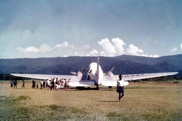 Further pics of the Kokoda Track airstrips. The pic of Efogi with the Twin Otter on a long final shows the 150m of 'flat' strip and it then disappears downhill at close to 17% in parts. Never having watched a Twotter landing there - I'd only be guessing at their technique. My guess is that they don't carry full flap, and use a swag of power to keep the nosewheel from touching the steep slope at too great an angle. I remember a C206 being broken at Efogi sometime in the 60's and it was because the elevator command wasn't good enough and it hit nosewheel 1st. The DC3,(VH-PAT), pic below was actually taken by Robyn Keinzle, (daughter of legendary Bert), loading at Kokoda in early 1961. Look at the 'tropical' clothes! This was the last pic taken of PAT because about a month later, it was 60nm NW of Port Moresby with a load of supplies for the Health Dept in Minj,(Western Highlands),when the crew saw smoke coming under the door. They made an emergency descent from 10,000 ft and landed at Bereina, a mission strip on an island. The flight crew and the sole supernumary, (a recently employed,and their 1st, flight attendant called Patti Gollum), evacuated via the cockpit windows. The aircraft exploded in flames due it's undeclared load of chemicals and was a total write-off. Luckily for all concerned the Captain was e highly experienced wartime pilot called Myles Lewis. I was based in Mt Hagen at that time and thought little more about it. In 1989, I was purchasing an aircraft in Arizona, and was invited to stayover with the people concerned. After a bit of note swapping - to my amazement, the lady turned out to be the same Patti Gollum who had escaped the DC3 accident in 1961. What a co-incidence!! We have all become good friends and we see them on any US visits. I have posted a pic of a Piaggio 166 VH-PAP, below. This aircraft became one of the many to disappear, or crash, in the Kokoda Gap. It was in early 1961, not long after I had arrived in Mt Hagen and began to fly,(as a pax), around various wild and woolly locations in the Western Highlands. The 'Pig' was flying Popondetta to Moresby mid afternoon - in the usual appalling weather - and disappeared near Mt Obree, just to the east of the Gap. It has never been found.The pilot had only been flying in PNG for 2 months and was relatively inexperienced. While searching for this aircraft, another wreck was spotted on Mt Obree - which turned out to be a USAF C47 which disappeared under similar conditions in 1944. Almost every year or two, a WW2 wreck is found somewhere in PNG. Pretty sobering stuff! The other 2 pics that I've posted are of the active volcano, Mt Lamington, which is nearly on track the Kokoda Gap to Popondetta - about 30nm or so. It exploded violently in 1951, killing 3000 local people in a fast moving gas cloud akin to that of Pompeii. Although calm in the 60's it still gave a spectacular sight for tourists when we flew around the crater rim - sometimes even inside it. Finally, a comment on one of the earlier pics which showed the point of impact of a Twin Otter in 2012. One of the techniques we never used was to pull off power on passing the Gap and try to descend 'straight in' to Kokoda - probably because we didn't have the same ability as the Twin Otter with its' 2 turbines. The route endorsing system we used called for maintaining altitude until level with or even past Kokoda - then turning back and descending through the more broken cloud away from the main range. Worked for us. happy days,