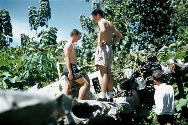 Onetrack, You are correct re the mountain artillery. Have just re-read Brune and it's on p202. Brigade Hill begins as you step away from the top end of Efogi airstrip, towards the south. The river off the lower end of Efogi runs along the W side of brigade Hill, and that's where the Japs sneaked in behind Potts. The Japs had used a classic encircling attack for all of the Kokoda campaign to date, and although Potts must have been aware of it, there are only so many eventualities that can be blocked off. pics below: (2). shows a RAAF Caribou parked at the top of Efogi in the early 70s. The Track runs under its' stbd wing and then up Brigade Hill. It must have been one hell of an exciting takeoff here as we barely made it in 185s! The other (3). is from Brigade Hill looking back down to the strip - a fair slog to get there. 1st pic is of the War Memorial in Kokoda village - an easy 5 min walk from the strip parking bay. NB - a small rain shower in distance toward the ranges. The final pic is of myself and mates uncovering a treasure trove of Jap Zero fighters on Sek airfield, (30km N of Madang), in 1962. The rising suns were clear under the wings, all the insts were in them, guns there, tyres rotting off the rims. But the snakes, centipedes, scorpions, chiggas, and vicious 'kurakem' ants, along with 'salaat' stinging trees, (worse than a 'Gympie Nettle tree), were small disincentives! happy days,