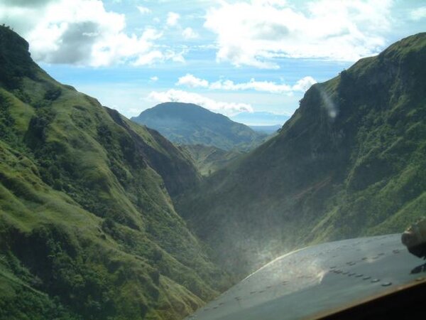 True, they did have these mountain artillery with them, and used them all the way up the Track from Kokoda to the top of the Gap. Potts knew about them, but the Brigade Hill setback was caused by Japs crawling up the slopes from the valley floor, and getting behind his HQ on the Track. I'm unsure whether the Japs actually managed to get their mountain artillery up and over the Gap to be used on the campaign through Kagi, Efogi, Menari, Naoro and Ioribaiwa. ? The Jap encircling movement, (despite being up a very,very steep slope, was what lead to the cutting off of many troops, causing a disorganised withdrawal. Potts and his HQ group only just managed a fighting retreat. I'm sure that is what Peter Brune wrote in his "A Bastard of a Place" which is regarded as a reasonable account of the campaign. When you have a look at all these places, from both g/l and above, you can only wonder at how anyone could defend anything. The pic below shows the Kokoda Gap from Kokoda on the N side. The lowest point thru the Gap was just under 6500, and even at 7500 going through in the mornings, we were looking up at a lot of threatening terrain. It looks so simple in this pic, but this is a rarity. By midday, you mostly need 12000 to get over here. Just to the RH side of this pic, the range rises to Mt Victoria,(13000). Alpine vegetation above 9500, and in cloud most of day. happy days,